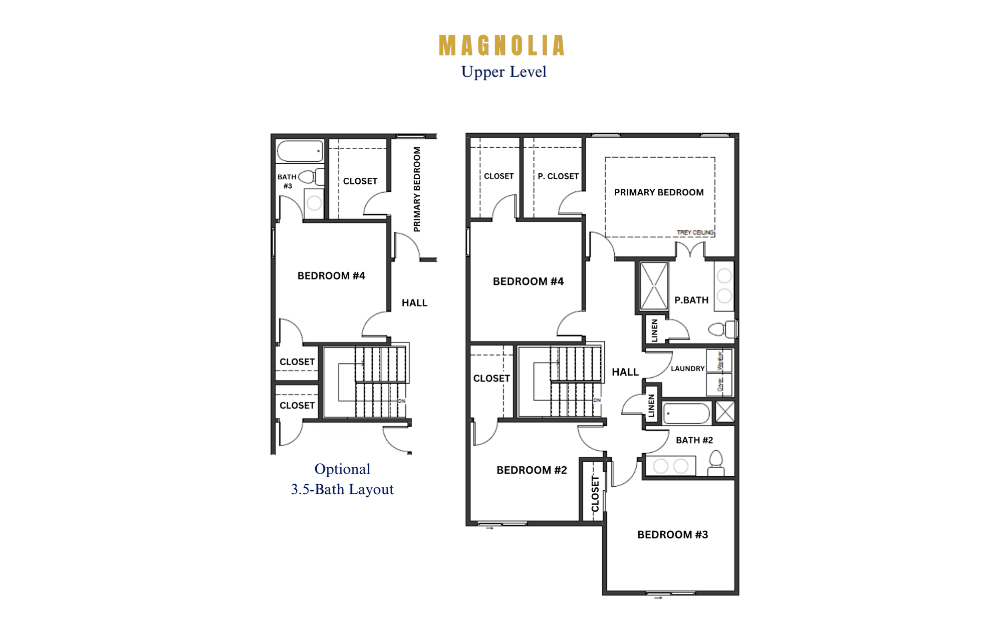 Introducing the "Magnolia", where versatility meets elegance in a 2-story, 4-bedroom, 2.5-bath layout that adapts to your lifestyle. Experience the essence of open-concept living as the spacious living room, dining area, and kitchen seamlessly flow together, ideal for both everyday living and entertaining. Retreat to the generously sized Primary Suite, complete with a spacious primary closet for your utmost comfort. With the option to expand Bedroom #2 to include an in-suite bath, transforming the layout to a convenient 3.5-bath configuration, the "Magnolia" floorplan offers flexibility and luxury in every corner.
